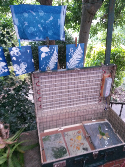 Cet automne, les balades-ateliers « L’empreinte des vagabondes » et « Le rayon bleu », avec les artistes plasticiennes Marie Ampe (teinture et impression végétales) et Marine Delcroix (photographie et cyanotype) ont encore été très suivies et appréciées (voir photos ci-dessous).
