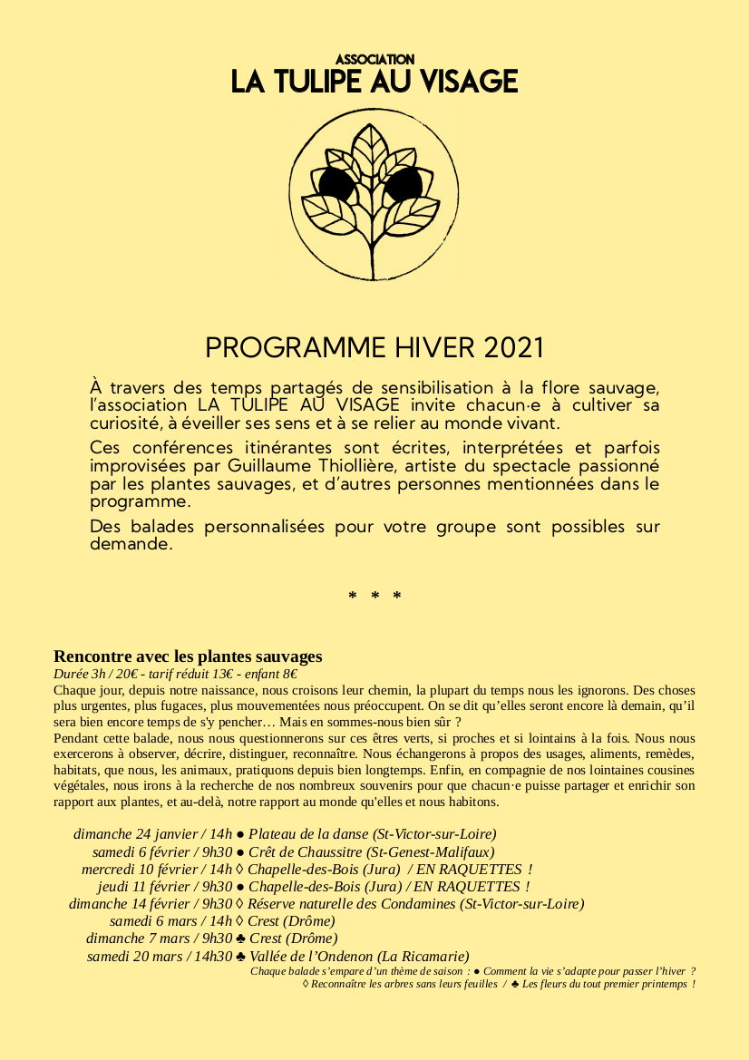 Si vous souhaitez être informé·e les prochaines fois des activités de LA TULIPE AU VISAGE, il faut vous abonner à la lettre d’information : https://framalistes.org/sympa/subscribe/infos-latulipeauvisage